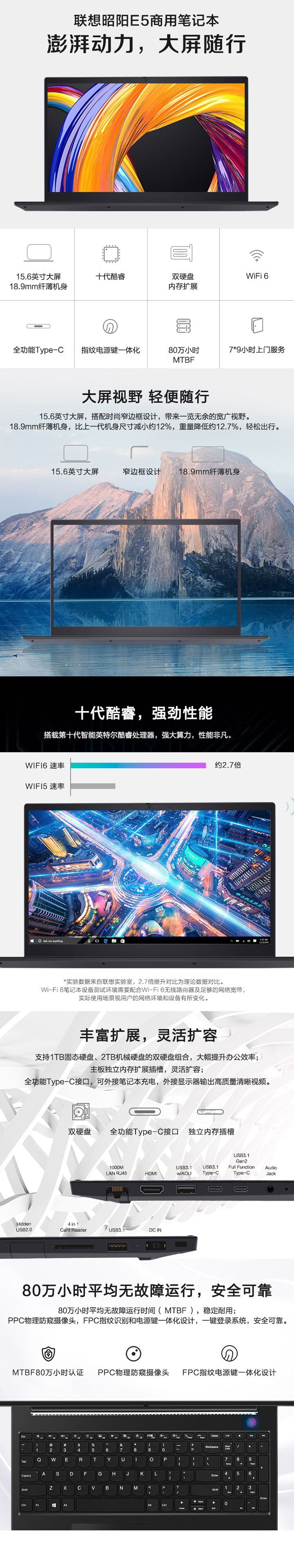 联想(lenovo) 昭阳E5-IML109 Intel酷睿第十代 i5(低电压) I5-10210U 16GB 1TB 256GB 中兴新支点V3 15.6寸 1年