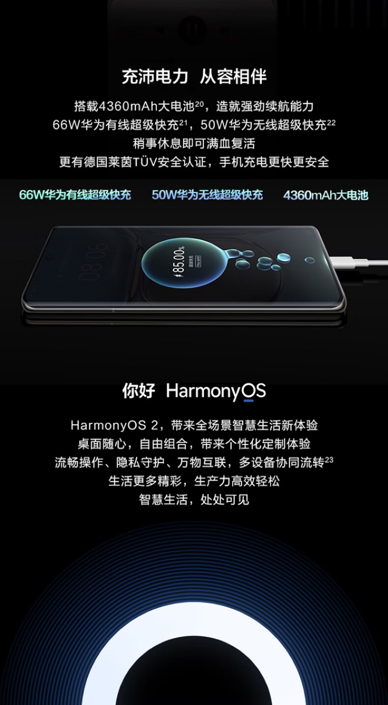 4360mAh(typ) 无线充电 50W 充电功率 66W |